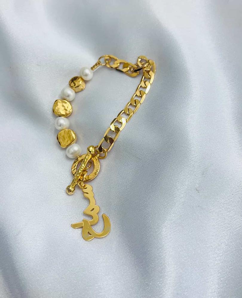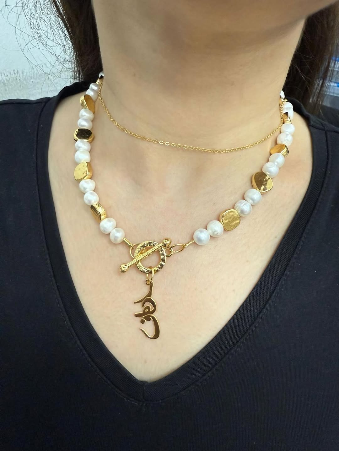 قلادة اسم مزدوجة باللؤلؤ مطلية