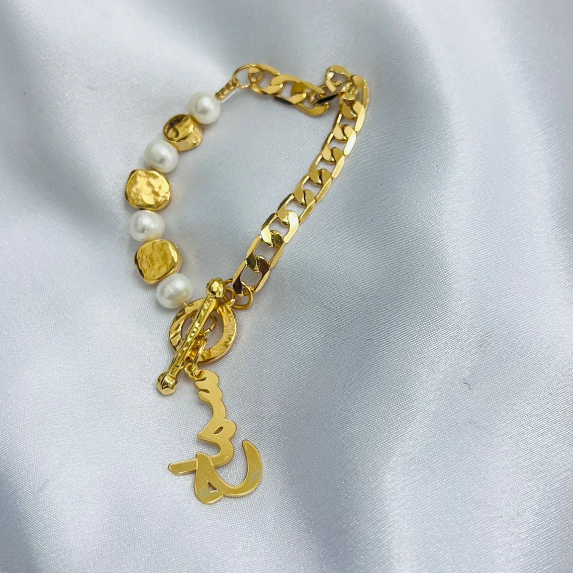 سوار اسم مخصص  مع لؤلؤ طبيبعي